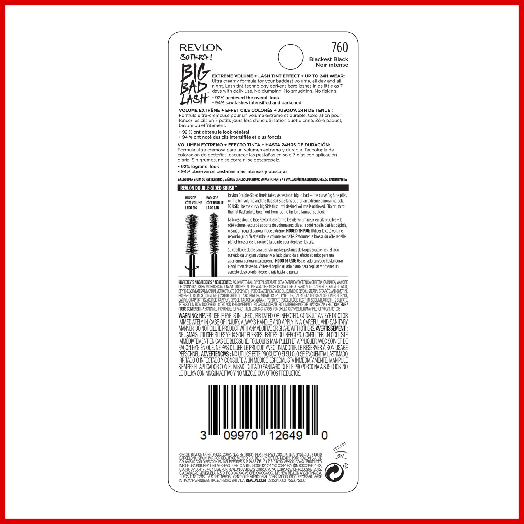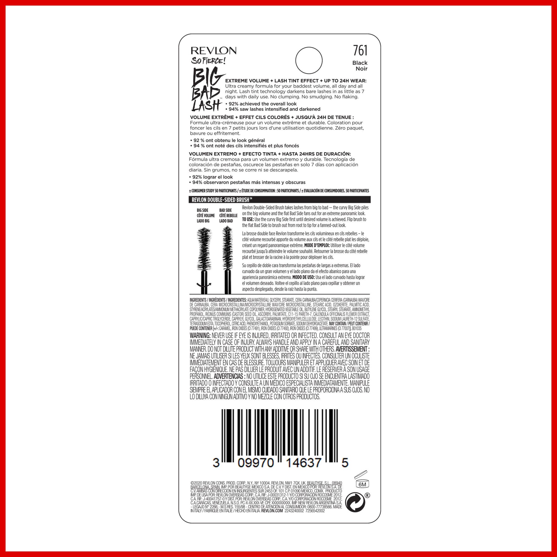 - Revlon Double-Sided Brush™ adds volume and fans out lashes